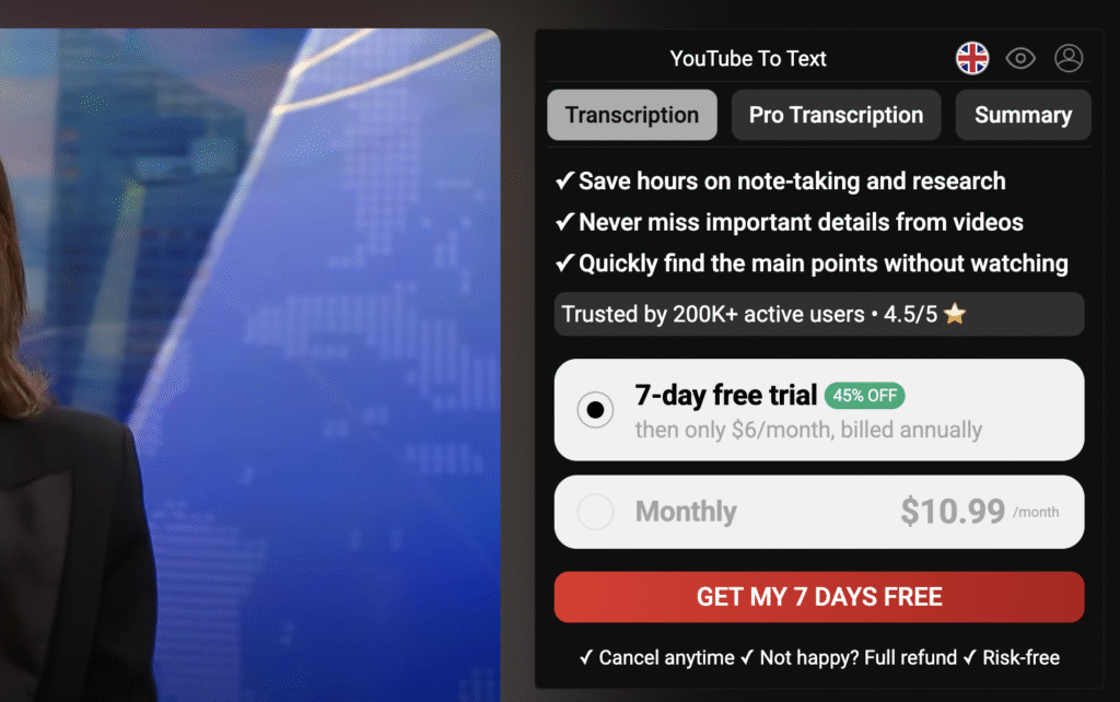 Try transcribing different video types, experiment with both transcript and summary features, and consider upgrading to premium for unlimited access. Ready to start? Click the extension icon on any YouTube video and begin transforming audio into text!